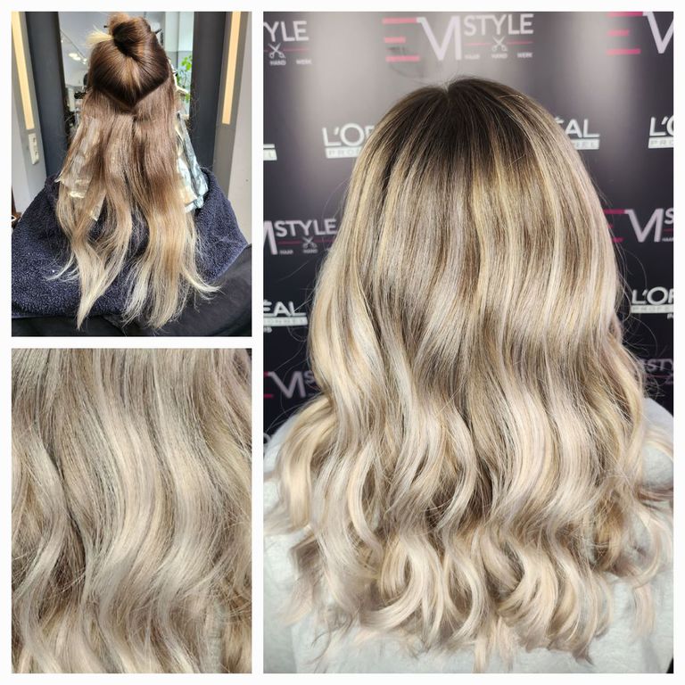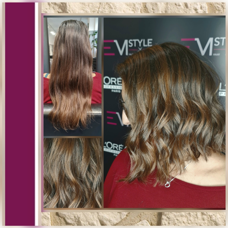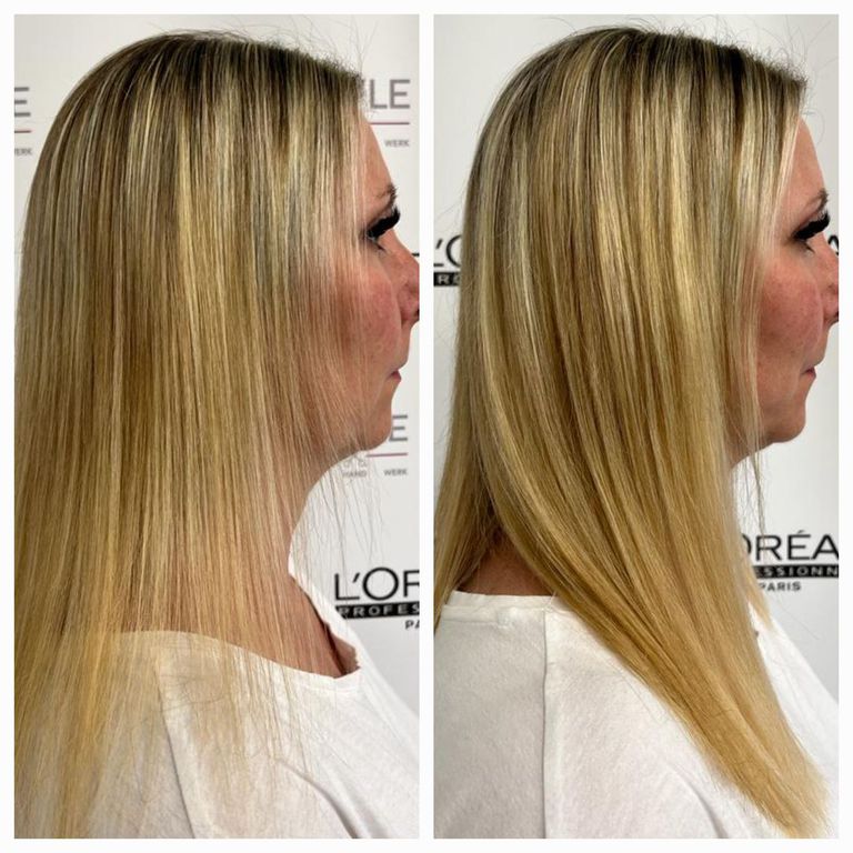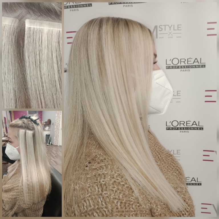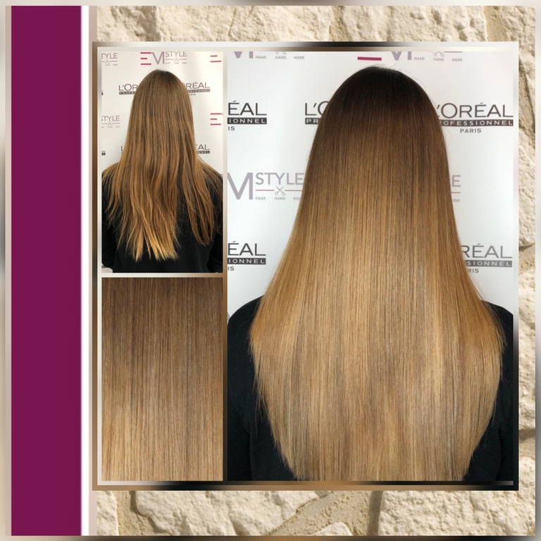 Die Tressen bestehen aus 100% Remy-Echthaar und werden in einem speziellen, schonenden Verfahren (Osmosepürozess) veredelt, um die Haarstruktur zu erhalten.