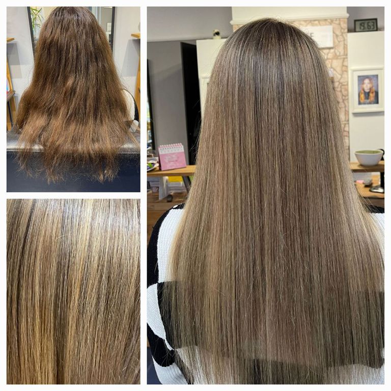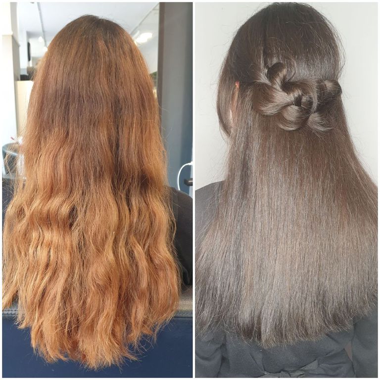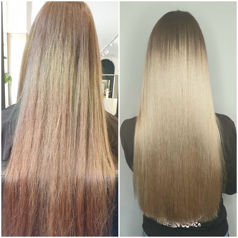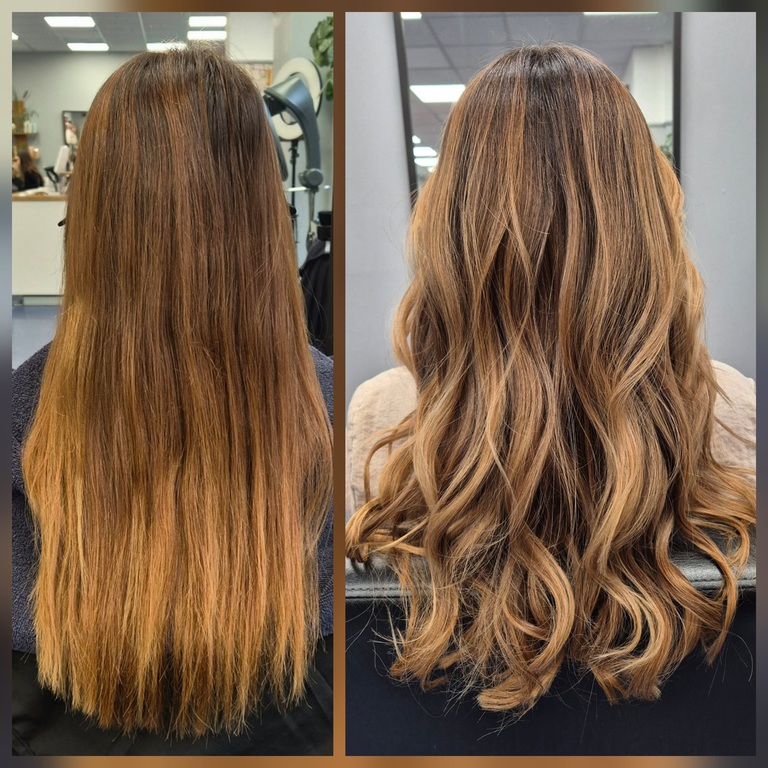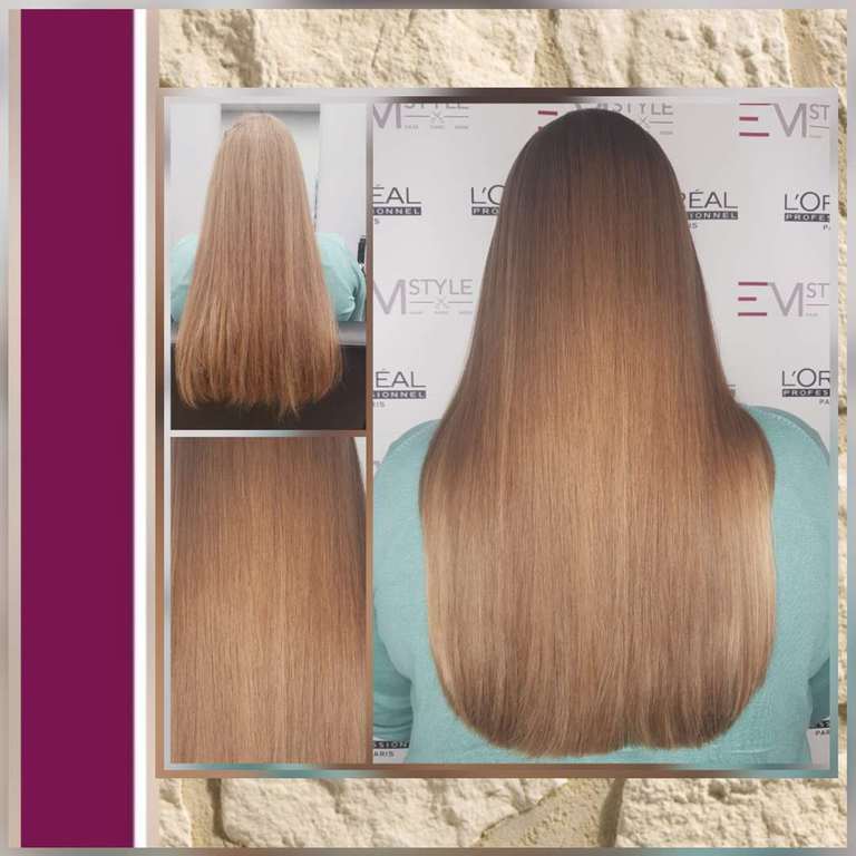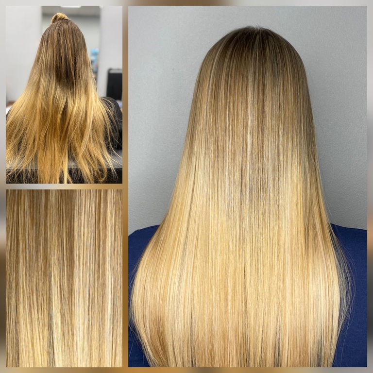 Die Tressen bestehen aus 100% Remy-Echthaar und werden in einem speziellen, schonenden Verfahren (Osmosepürozess) veredelt, um die Haarstruktur zu erhalten.