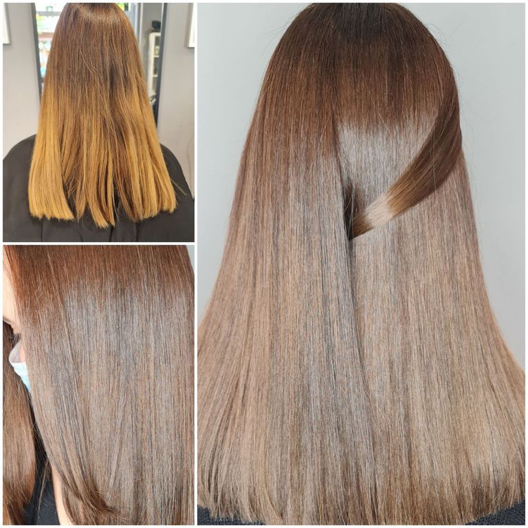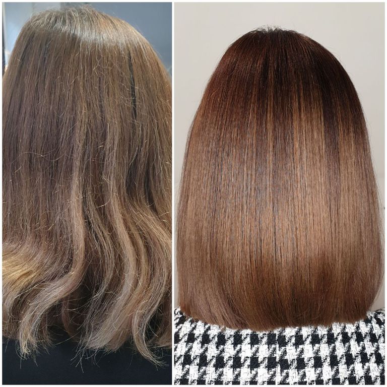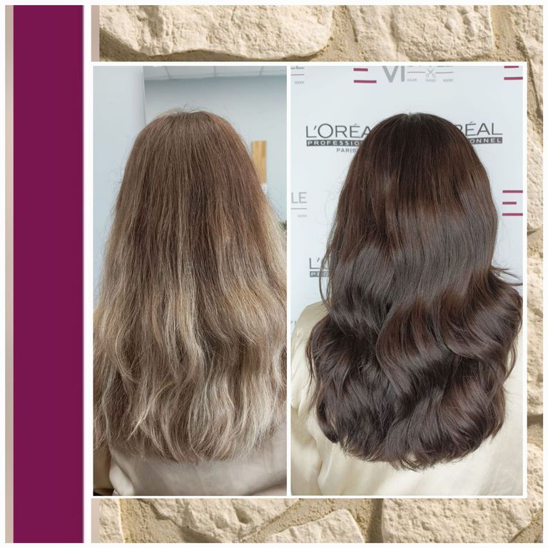 Semi-permanente, pflegende Haarfarbe.